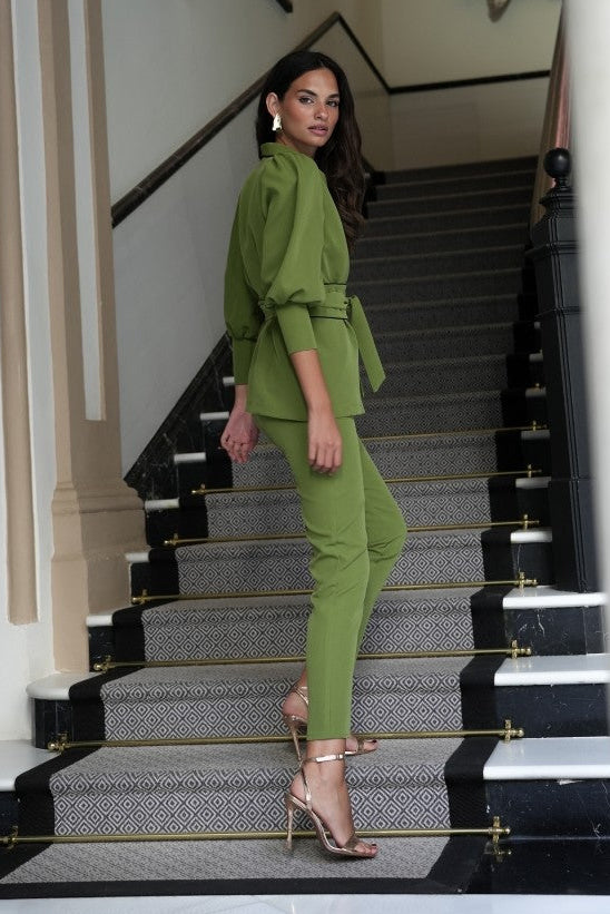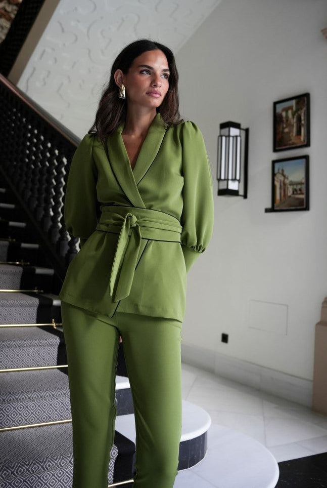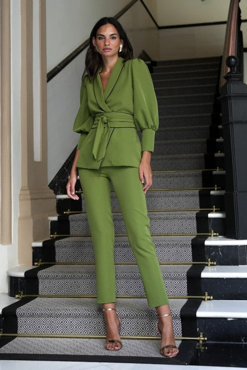 The Siberia Suit blends structure with comfort. Made from flattering bio-elastic fabric, it features a tailored double-breasted jacket and sleek straight-leg trousers for a modern, feminine silhouette.